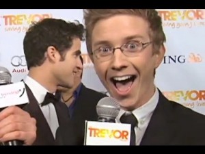 Screenshot from one of Tyler Oakley's videos where he works with the Trevor Project at a gala for advocates of LGBT rights.