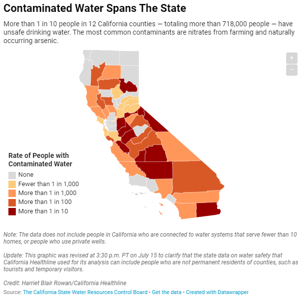 Image below is showing data from 2010 when EWG, a nonprofit organization, tested 35 major cities in the US and found nearly all of them to contain just one chemical that is a known carcinogen. This had raised concerned when looking at the nations regulated amount that is allowed to be in water is much higher than what is being proven to be healthy amounts. In following years, apparent watches of chemical and tests were done and somehow in the end the way that it is regulated seems to have not changed in anyway with still allowing insanely high levels of this single chemical in the tap water. Within this list, San Jose, my city that I currently live in and grew up in, was near the top of the list containing quite high numbers of particles in the water.