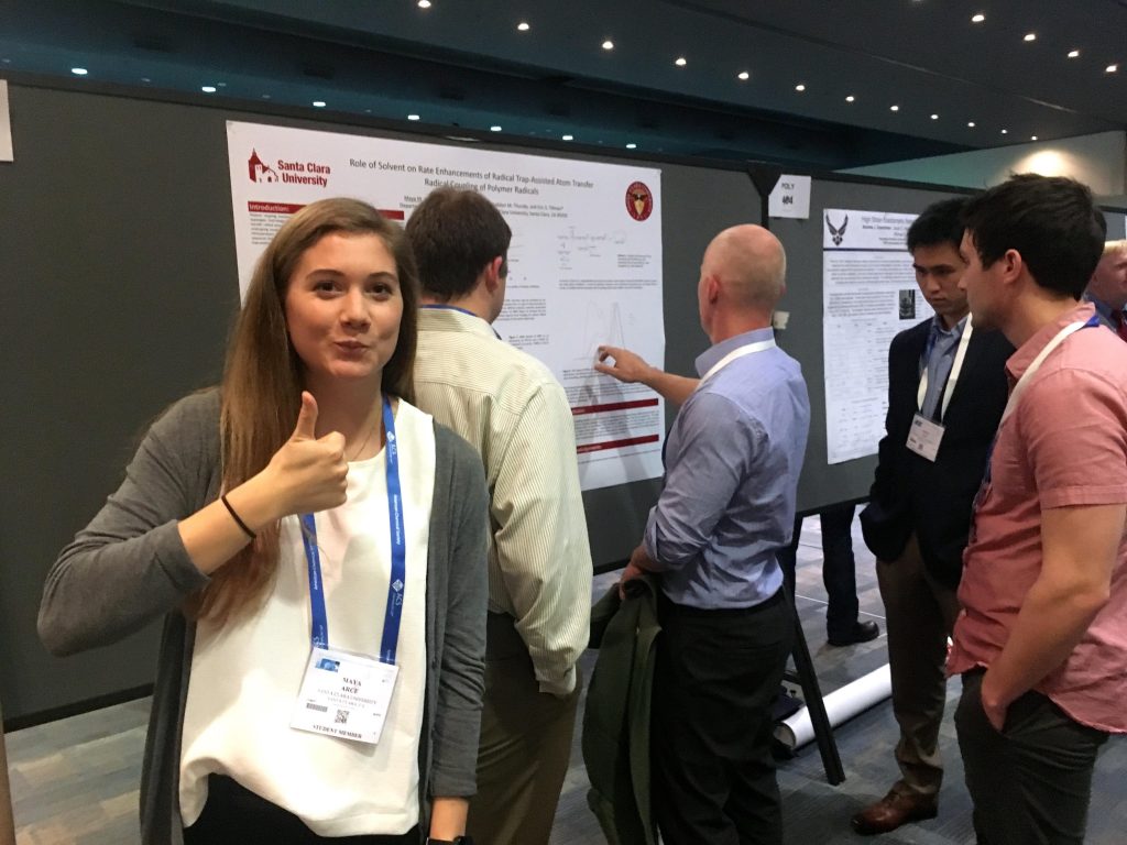SF ACS 2017: Maya gives my explanation of our poster a “thumbs up”. (Note: that’s Scott Radzinski, who got his MS with me at Bucknell, who I’m talking to).
