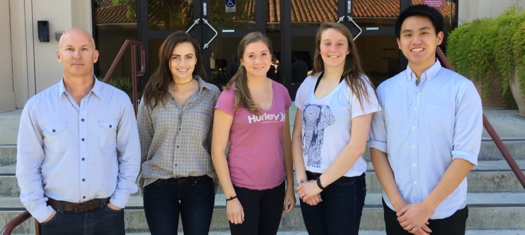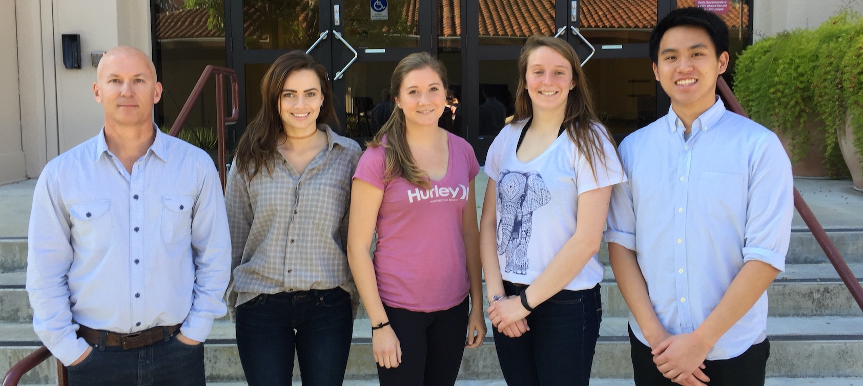 First research group at SCU: Spring 2016. Eric Tillman, Camille DuBois, Maya Arce, Madalyn Thursby, Ching Pan