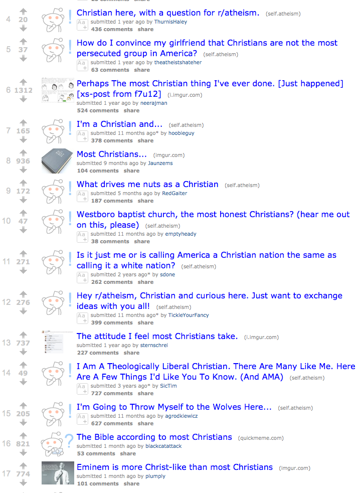 Screen Shot of Search on r/atheism. Source: Most Christians Are…