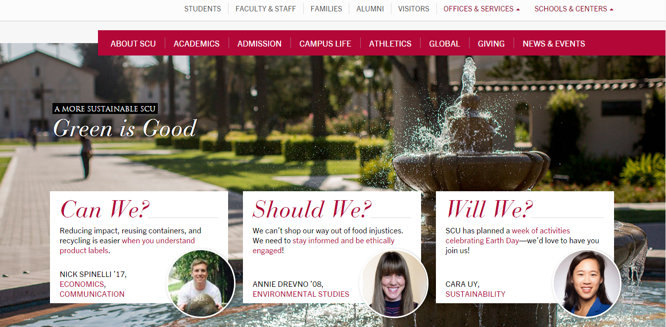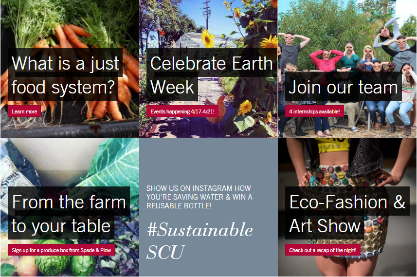 But taking a look at the image above, you can see that many of these environmentalist sentiments still remain today. My university still remains dedicated to talking about the issues that affect our planet and what we, both academics and everyday people, can do to sustain the nature that surrounds us. Though my 1970 archival documents described the events that occurred during the Modern Environmental movement, following in the wake of books like Rachel Carson’s Silent Spring, the ideas behind these events continue to fuel the environmental efforts of SCU (“Silent Spring”). Just look at the sustainability efforts pictured in the image below, like the running hashtag #SustainableSCU (SCU).