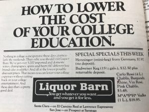 But then I grabbed a old newspaper and I very interested really quickly. It was from 1982 and basically showed me how these students lived their lives in college way back then. I have always believed that I should be living in the 80’s as well, I feel like I would fit in. So it was interesting to see the amount of differences in the social norms. Even it basic un-written rules are completely different now, like the idea of an alcohol add such as this: