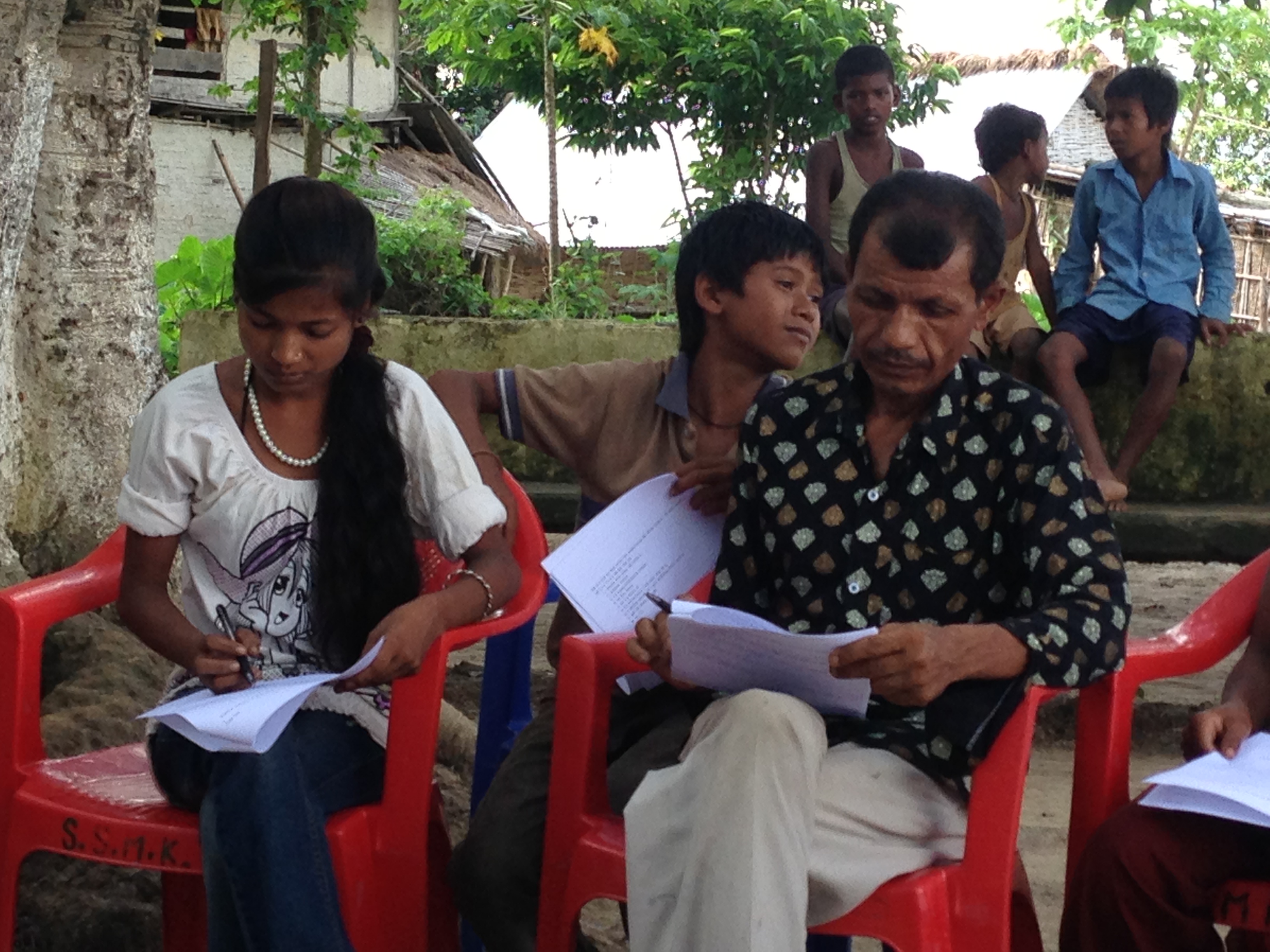 Question and answer session with many Nepali men