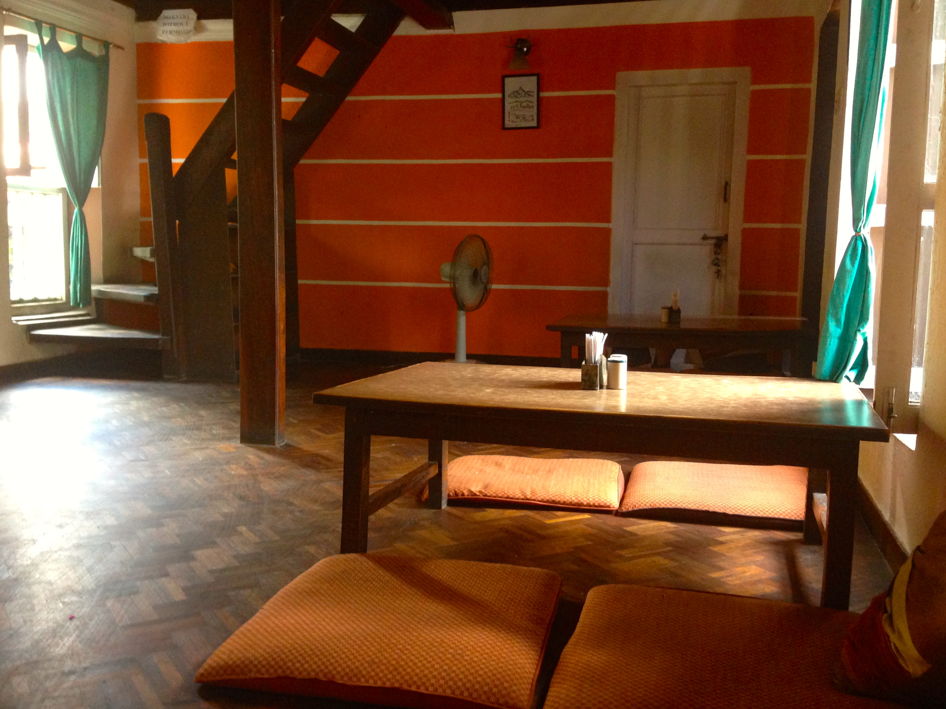 Eating Nepali style with cushions and low-lying tables